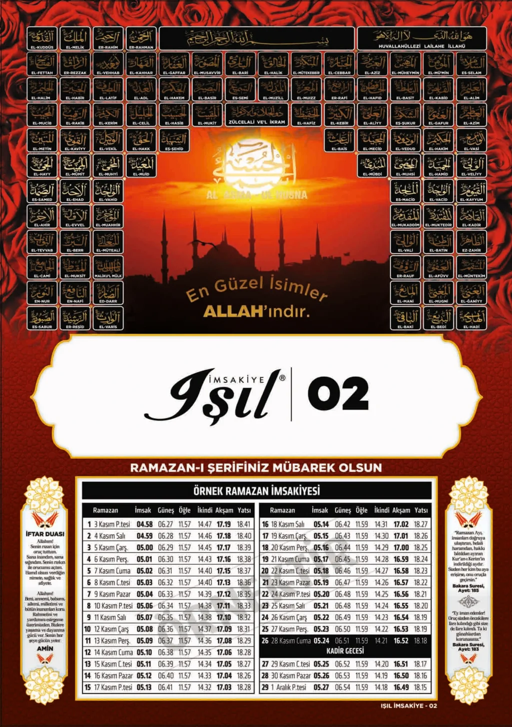 Tekirdağ İmsakiye Süleymanpaşa ilçesi için BRC Matbaa tarafından özel olarak tasarlanmıştır.