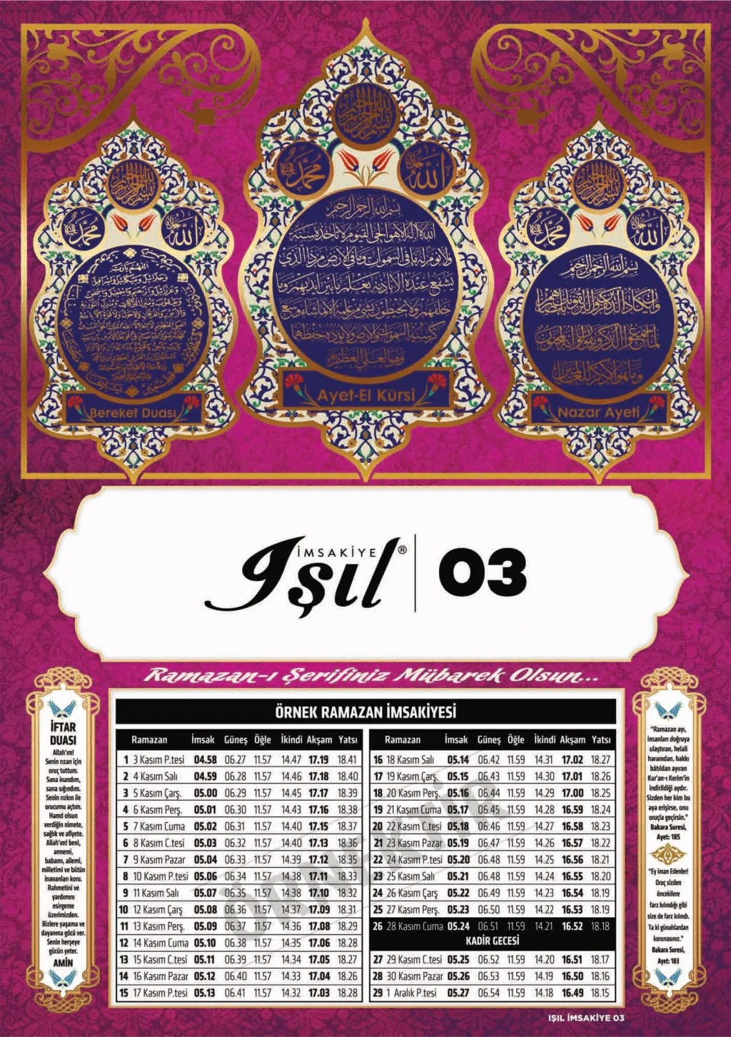 Karton İmsakiye Işıl-11