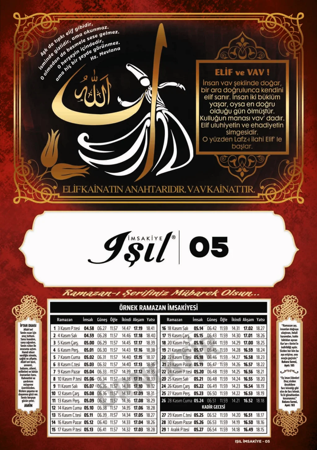 Karton İmsakiye Işıl-11