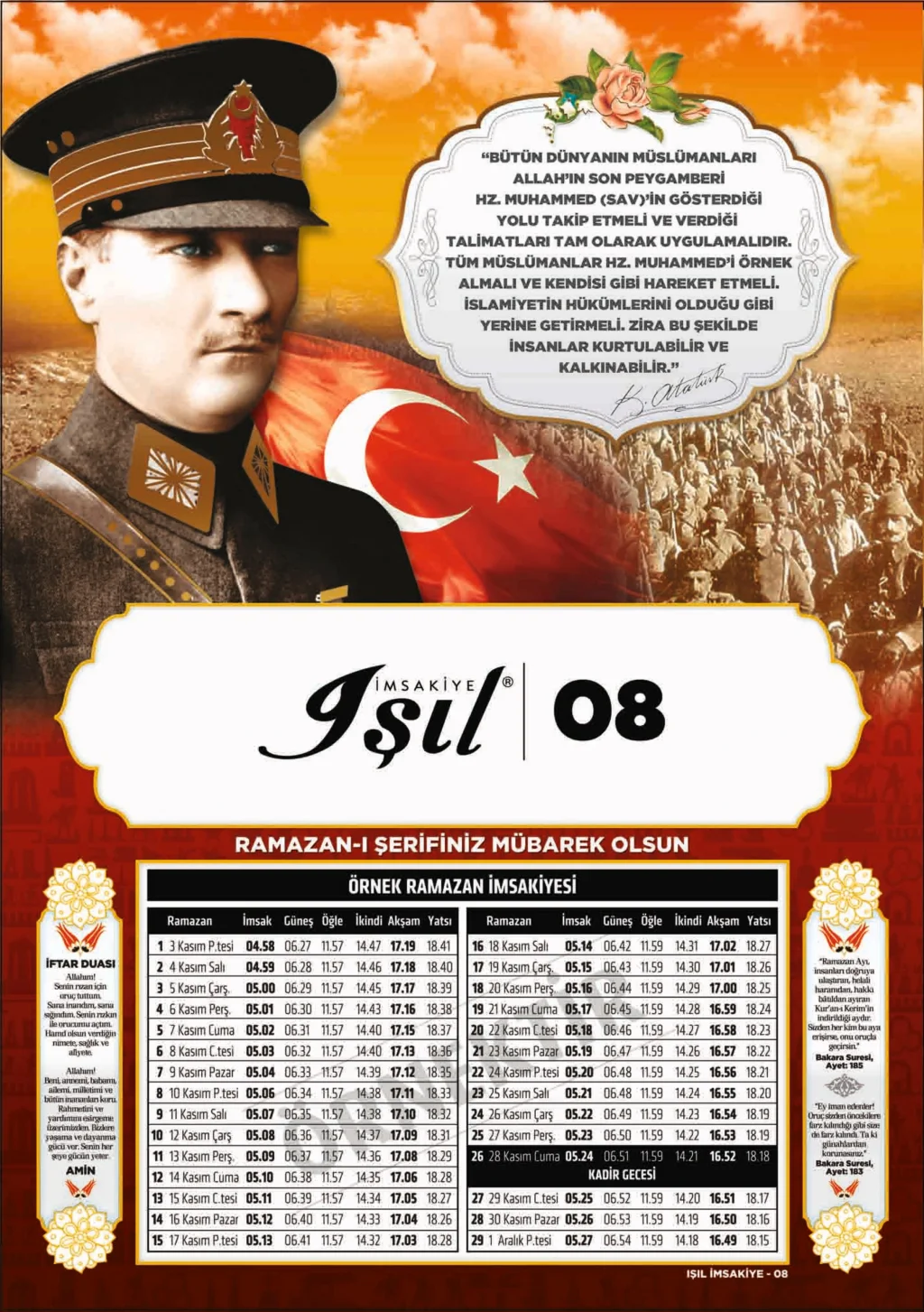 Tekirdağ İmsakiye Süleymanpaşa ilçesi için BRC Matbaa tarafından özel olarak tasarlanmıştır.